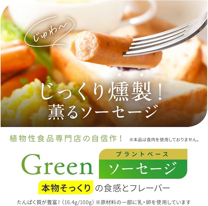 Green プラントベース・ソーセージ【2袋セット】業務用 1kg(約46本)×2pac ※卵使用 【冷凍食品】大豆ミート 植物肉 ベジタリアン1