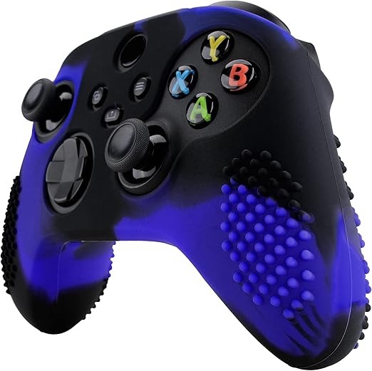 eXtremeRate PlayVital 3D Studded版Xbox Series X/Sコントローラーに対応用アンチスリップシリコーンカバースキン、黒い親指グリップキャップ6つ付き、Xbox Coreワイヤレスコントローラ対応用ソフトラバーケースプロテクター【ブルー&ブラック】1