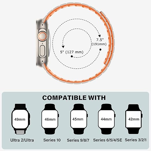 [対応機種]: Bisikor アップルウォッチ49mm 45mm 44mm 42mm、iWatch Ultra 2、iWatch Ultra、iWatch SE、iWatch Series 9 Series 8 Series 7 Series 6 Series 5 Series 4 Series 3 Series 2 Series 1に対応するマグネットシリコンストラップ。5インチ〜7.5インチ(127mm - 191mm)の手首にフィットします。正しいサイズを選択するには、時計の裏側のサイズ