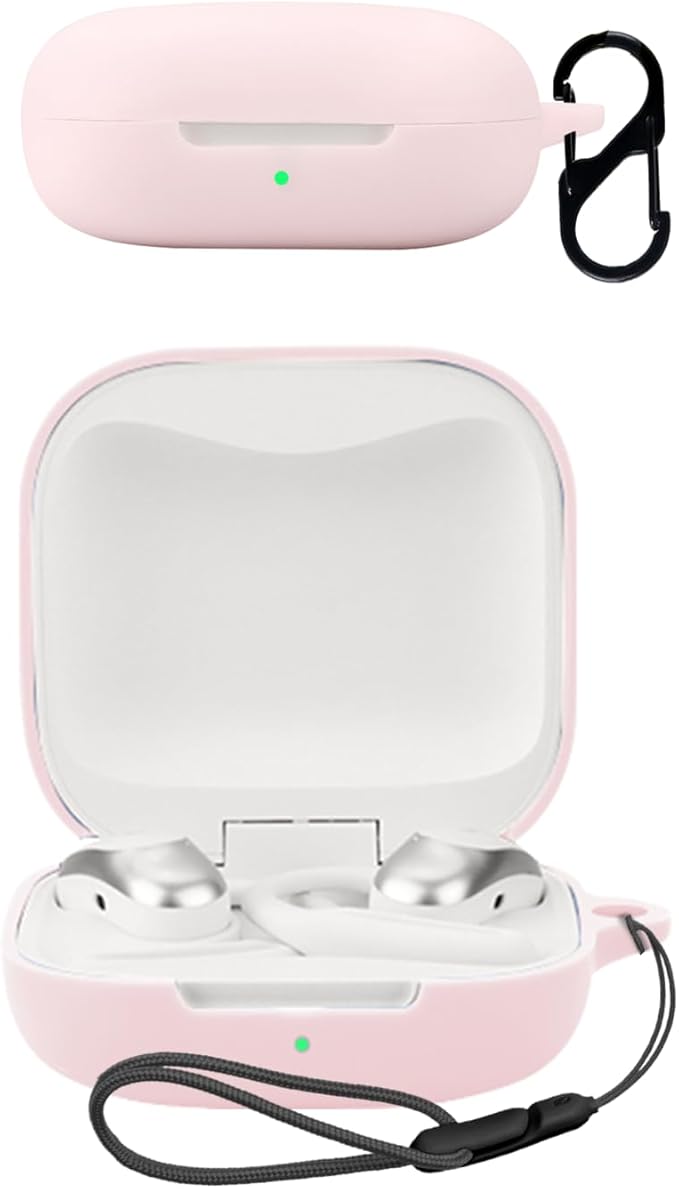 For Shokz OpenFit Air 用 ケース カバー 【NOUKAJU】 ワイヤレス イヤーホン シリコン 保護ケース (カラビナ付き+ストラップ付き ) 落下防止 キズ防止 耐衝撃 装着充電可能 防水 防塵 (ピンク)1