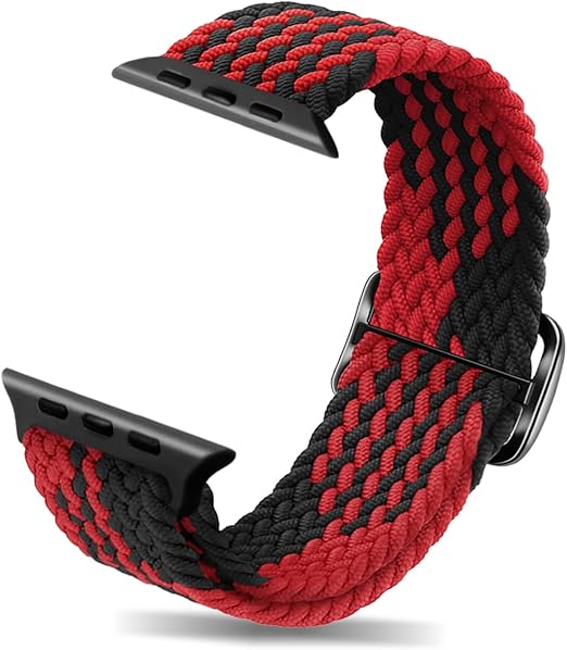 CeiBand ナイロンバンド 対応 Apple Watch 38mm 40mm 41mm 42mm 44mm 45mm 49mm サイズあり 時計バンド 編み 伸縮性 交換ベルト 通気性 柔軟性 クイックリリース 腕時計ベルト スマートウォッチバンド ベルト (レッド/ブラック 38mm/40mm/41mm)1