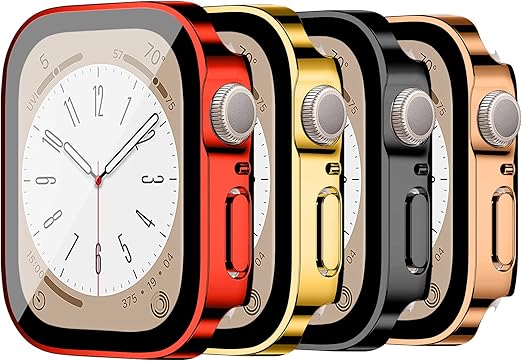 4パックウォッチ保護ケースコンパチブルApple Watchシリーズ8 7 41/45mm全面保護強化ガラススクリーンプロテクター、耐衝撃性 指紋防止 極薄軽量 一体感設計 高透過率 取扱簡単IWATCHシリーズ6 5 4 40/44mmのハードPC保護ケース、set L1