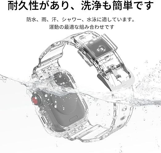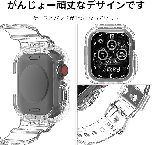 [ANYOI] 対応 Apple Watch バンド 49mm 45mm 44mm 42mm 41mm 40mm 38mm 耐衝撃 一体型傷防止 防衝撃 TPU材質 アップルウォッチ バンド 交換ベルト 装着簡単ケース 対応 Apple Watch Series Ultra2/Ultra/SE2/SE/9/8/7/6/5/4/3/2/1 (42mm/44mm/45mm、クリア)1