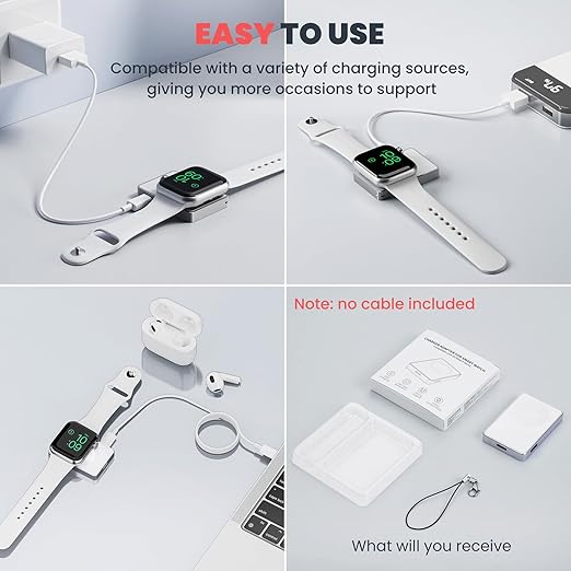 アップルウォッチ 充電器、ポータブルApple Watch急速充電器、Apple Watch 10 9 8 7 6 5 SE 4 3 Ultra 1 2用のキーチェーン付き磁気ワイヤレストラベル充電ドック、USB CまたはiPhone電源ケーブルに接続します。スターライトカラー1