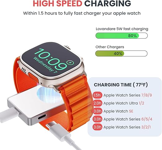 【他より40%速い】アップルウォッチ充電器 5Wチップセットで設計され、高速充電モードをサポートしています。充電効率は、他の充電方法よりも40%高く、77°F(25℃)で、このapple watch 充電器は完全にあなたのアップルウォッチを充電することができますわずか2?3時間かかり、大幅にあなたが待つ時間を短縮します