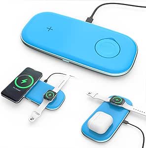 【2024新登場】QUARC 2in1ワイヤレス急速充電器 Qi認証 急速 Quick Charge 最大15W出力 iPhone 15/14/13/12/11Pro/ProMax/XS/XR/X/8シリーズ Galaxy Xperiaなど 各機種対応 Aripods Apple Watch アップルウォッチ ワイヤレスチャージャー (ブルー)1