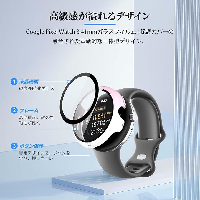 Google Pixel Watch 3 41mm / Pixel Watch 2 用 カバー ケース アップルウォッチ保護カバー ガラスフィルム 一体型 防水 防塵【HUKWIMO】 3D全面保護 指紋防止 HD高透過率 傷に強い 極薄 撥水撥油 反射低減 Google Pixel Watch 3 41mm / Pixel Watch 2 対応 (ピンク+ホワイト)1
