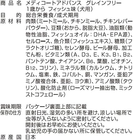 メディコートアドバンス グレインフリー 1歳から フィッシュ味【国産/アルミ小分け】 2kg(500g×4袋)