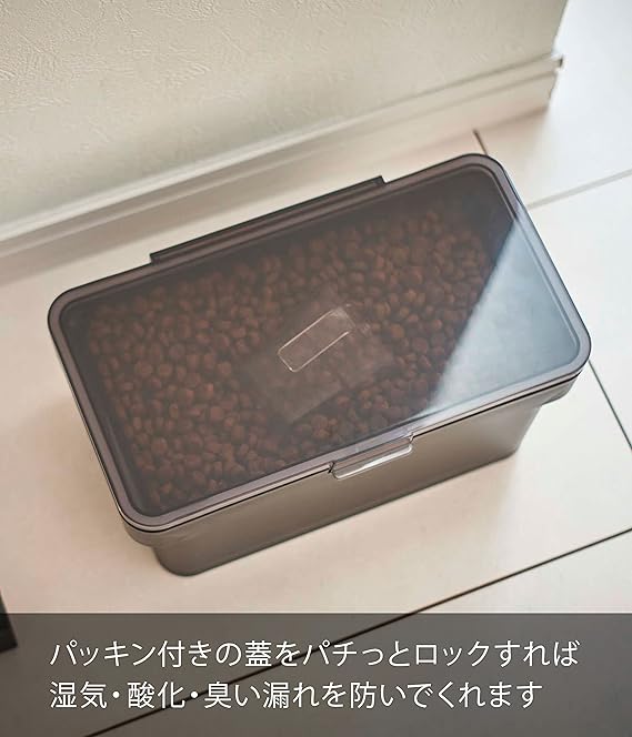 山崎実業(Yamazaki) 密閉 ペットフードストッカー 1.5kg 計量カップ付 ブラック 約W28×D16.5×H12.2㎝(蓋開口時:約H27㎝) タワー フードストッカー 保存容器 5610
