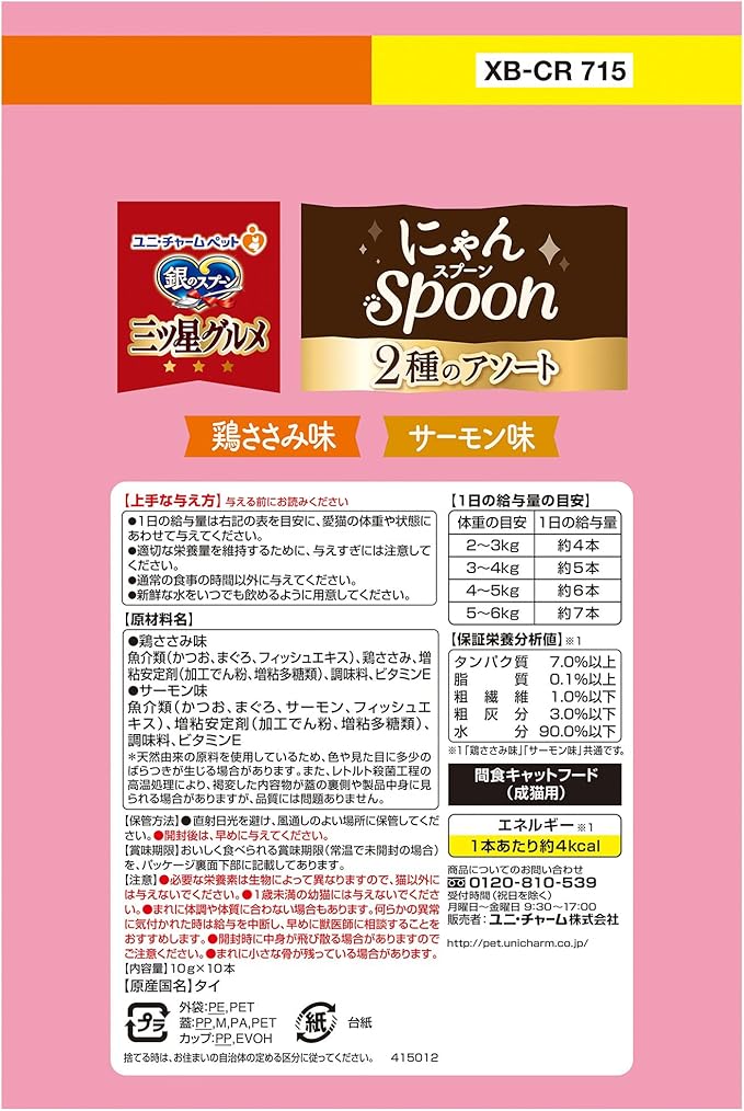銀のスプーン 猫用 おやつ にゃんSpoon 2種のアソート 鶏ささみ・サーモン味 100g キャットフード ユニチャーム