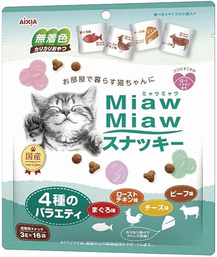 ミャウミャウ (MiawMiaw) スナッキー 4種のバラエティ まぐろ味・ローストチキン味・ビーフ味・チーズ味 48g×3個セット
