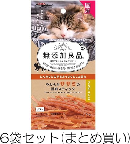 キャティーマン (CattyMan) 無添加良品 やわらかササミの極細スティック 15g×6袋