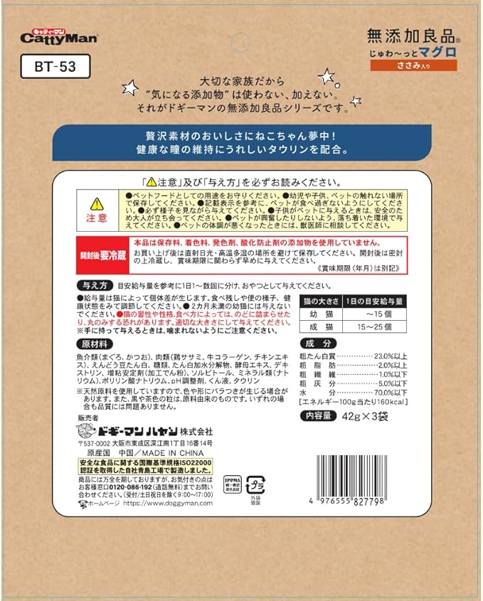 キャティーマン 無添加良品 じゅわ~っとマグロ ささみ入り 126g(42g×3袋入り)×3セット