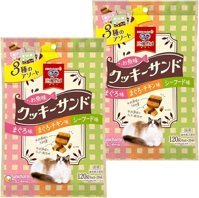 【まとめ買い】銀のスプーン 猫用 おやつ お魚味クッキーサンド 3種のアソート まぐろ・まぐろチキン・シーフード味 120g(6g×20袋)×2 国産 キャットフード ユニチャーム
