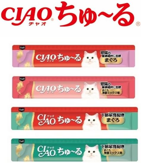 下部尿路配慮ちゅ~る:2種類、腎臓の健康維持に配慮ちゅ~る:2種類の計4種類のまぐろベースのフレーバーのバラエテ