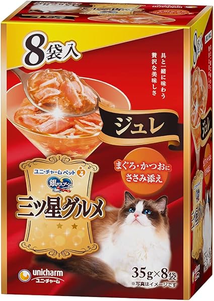銀のスプーン キャットフード ウェット 三ツ星グルメ パウチ ジュレ まぐろ・かつおにささみ添え 35g×8袋 ユニチャーム