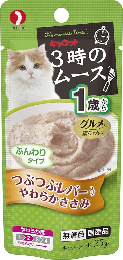 キャネット キャットフード 3時のムース 1歳から つぶつぶレバー入り 25グラム (x 12) (まとめ買い)