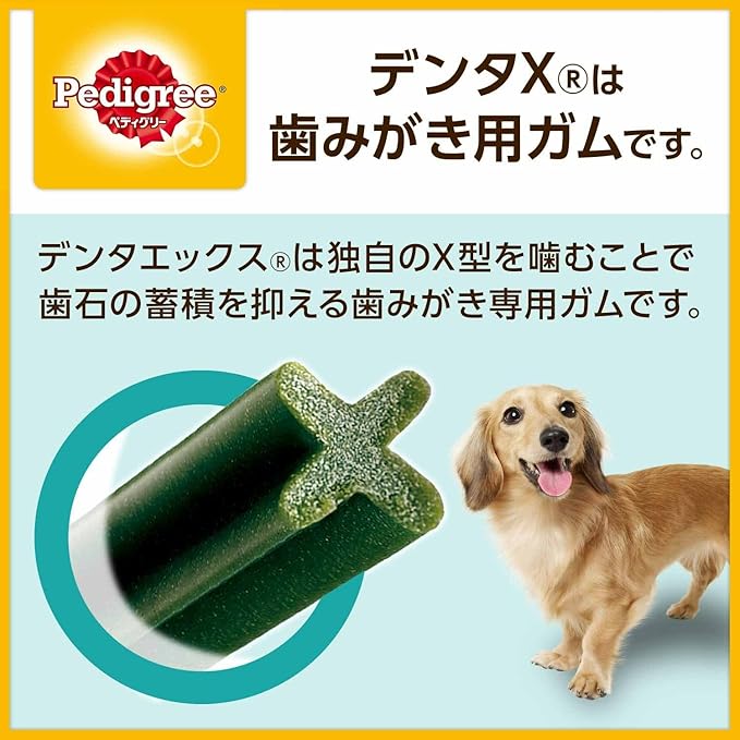 独自のX型を噛むことで歯石の蓄積を抑える歯みがき専用ガム。小型犬のために設計。