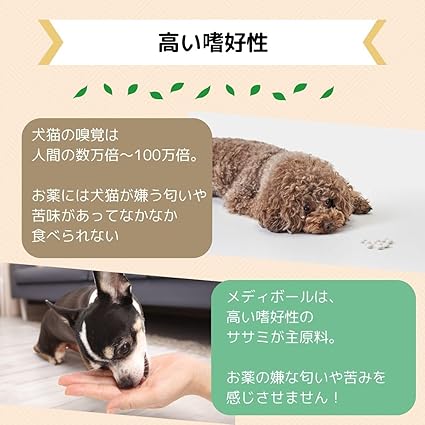 メディボールはお薬が苦手なワンちゃんのために獣医師と共同で開発した投薬補助用のおやつです。