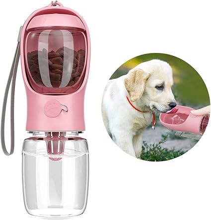 C-J-W 犬 水飲み器 ペット 水飲み 犬 散歩 おやつ 給水器 水槽付き 犬用品 犬用水入れ ウォーターボトル 350ml 大容量 水漏れ防止 高温耐性 携帯用飲み器 犬猫など 多種ペット適用 ピンク