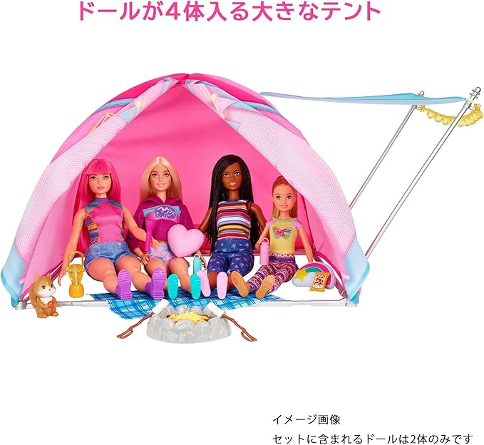 バービー(Barbie) かわいいピンクのテントとキャンプセット/映画「バービー」に登場!?【着せ替え人形】【ドール2体付、アクセサリープレイセット】 【3才~】 HGC181