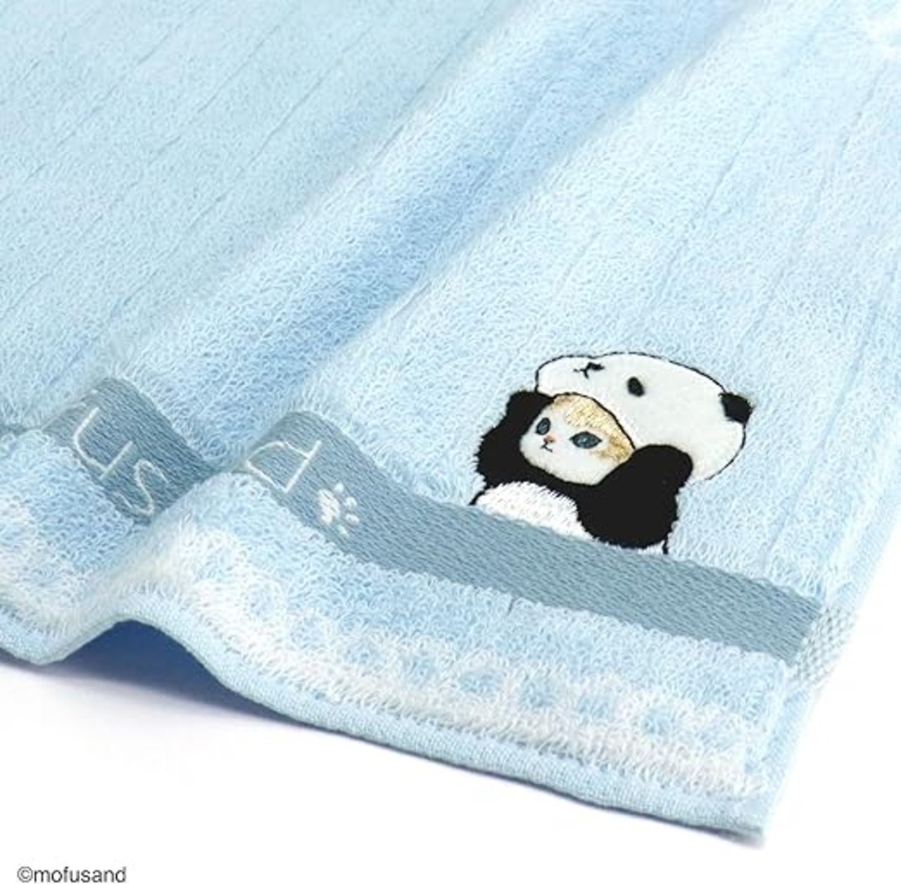 mofusand パステルレース タオルハンカチ ブルー 猫 レース 可愛い 43-0130080 約25×25cm1