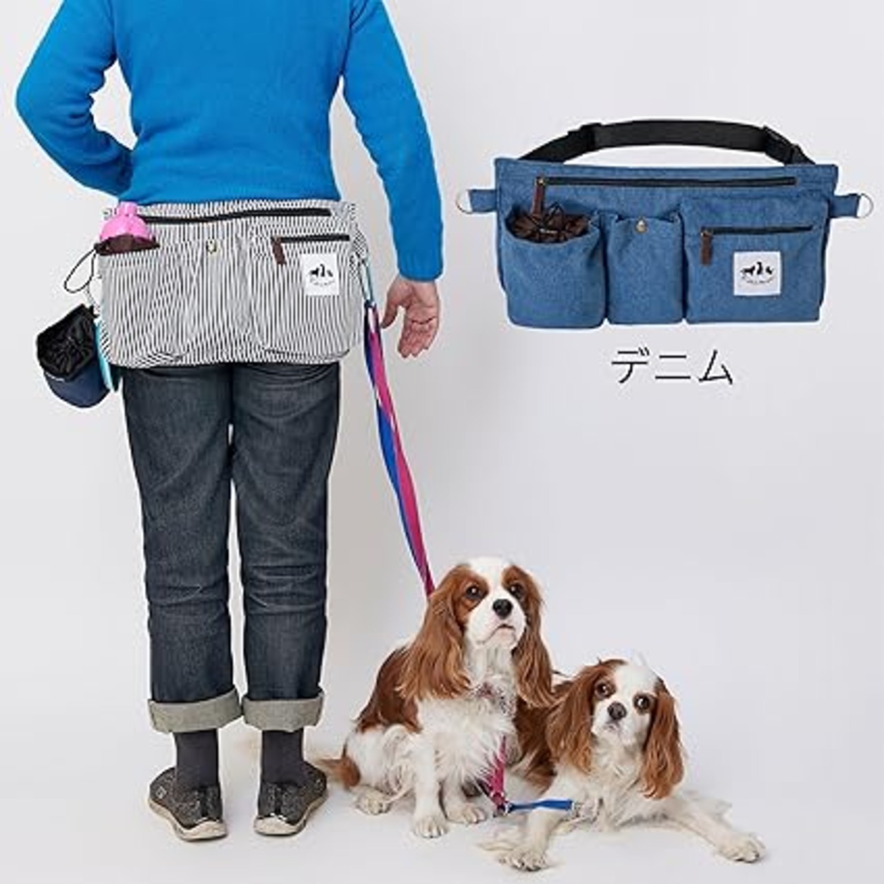 KAINU 犬用 お散歩バッグ ウエストポーチ お散歩 アウトドア お出かけ 帆布 ペット バッグ トリーツポーチ ポーチ 散歩グッズ (デニム)