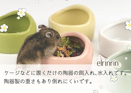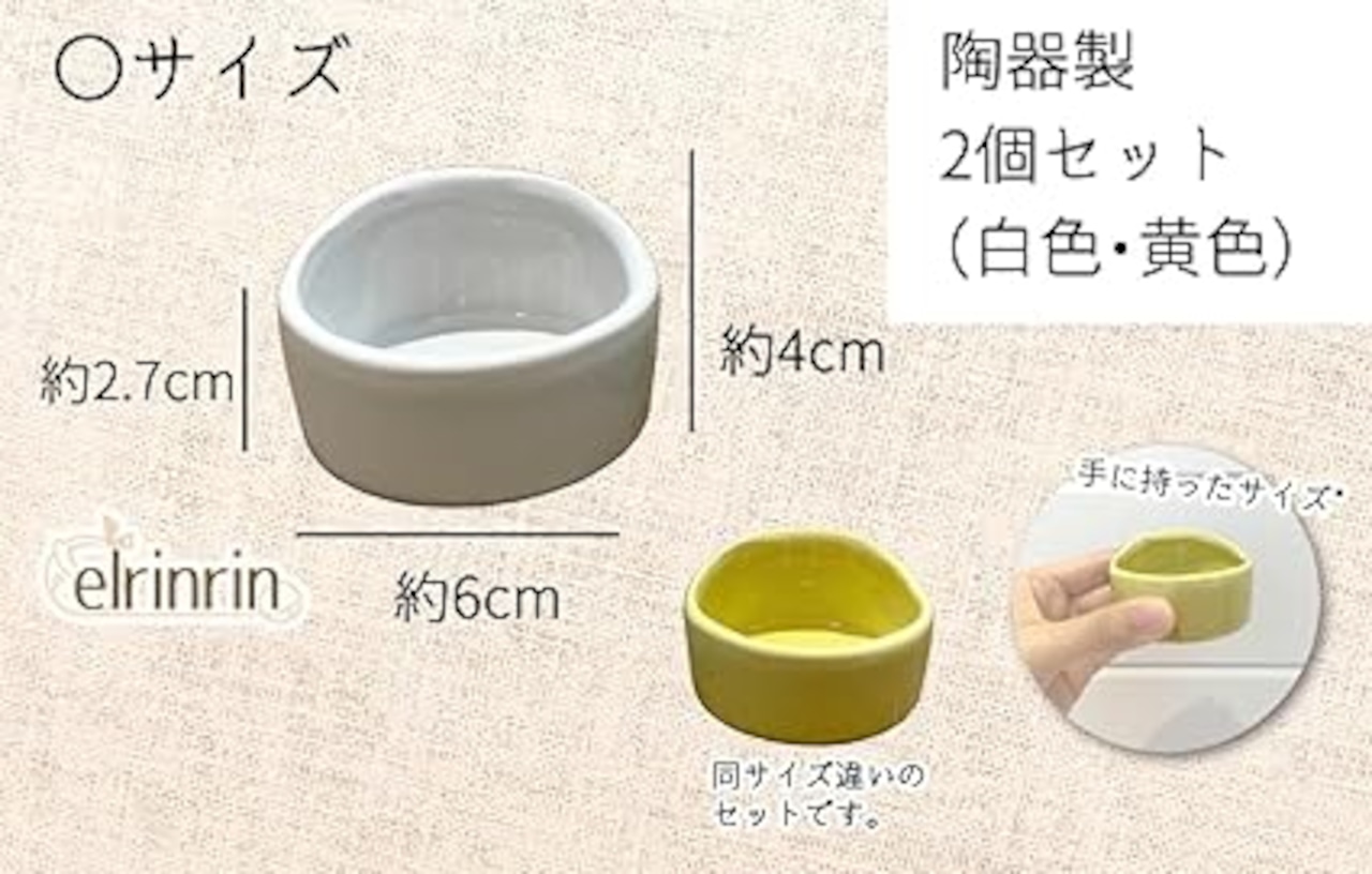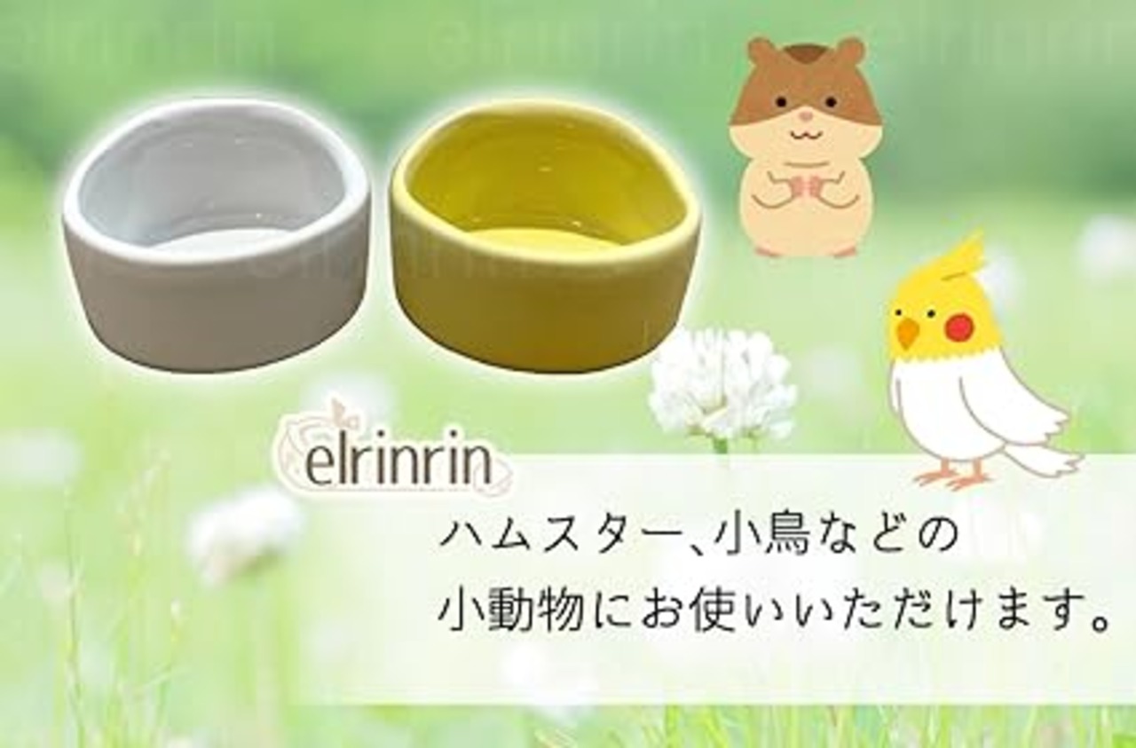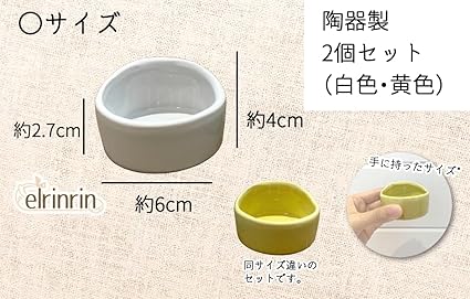 elrinrin 餌入れ 水飲み 置き型 陶器 エサ 器 水入れ えさ入れ 小鳥 フードボウル フードフィーダー ボウル 小動物 皿 白・黄セット