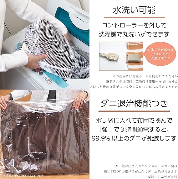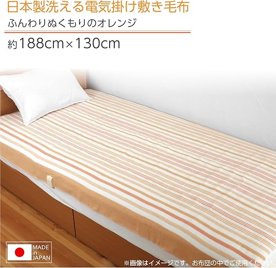 ライフジョイ 電気毛布 日本製 掛け 敷き 兼用 シングル オレンジ 188cm×130cm 洗濯可能 8時間OFFタイマー機能付 室温センサー付 頭寒足暖 やわらか JBK551G-D