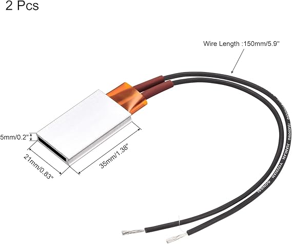 PTC ヒーターのサイズ: 12Vの定格電圧、2W 〜 15の定格電力W、70Cの定格温度 、50/60Hzの周波数、15cmのワイヤ長, 35mm x 21mm x 5mmのサイズ