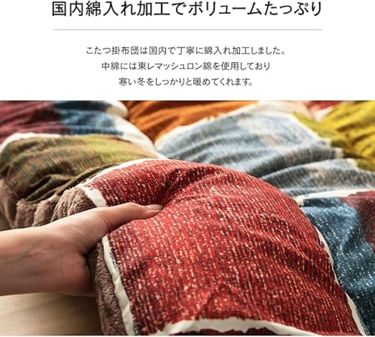 素材:表地=ポリエステル 100%【ピーチスキン】 裏地=ポリエステル 100%【フランネル】中材=ポリエステル100% 2.2kg(東レ マッシュロンわた)