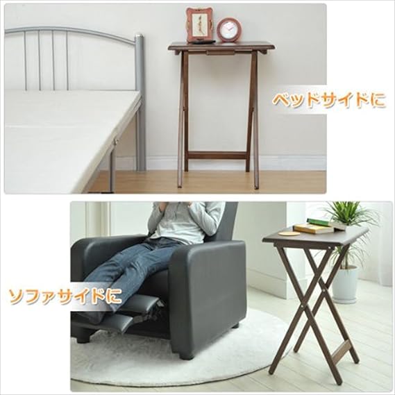 [山善] 折りたたみテーブル サイドテーブル ハイ 幅48.5×奥行37.5×高さ66cm 木製 台 完成品 フレッシュブラウン STR-50H(FBR)