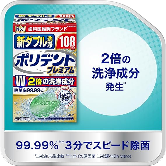 ポリデント 新ダブル洗浄 入れ歯洗浄剤 108錠+6錠増量品 99.99%除菌