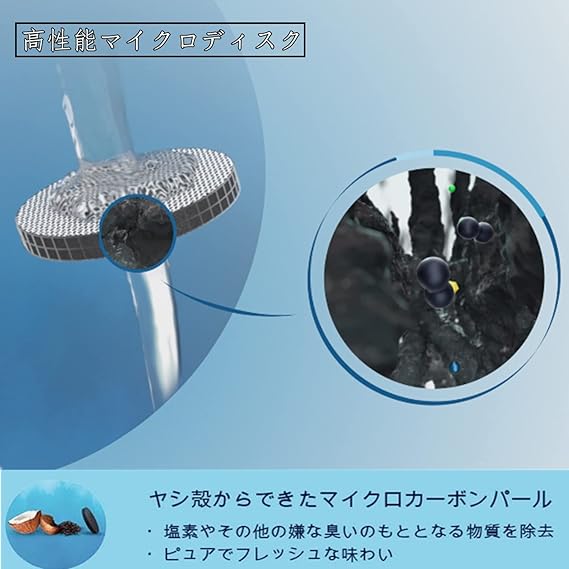 【高性能マイクロディスク】カルシウムやマグネシウムなどのミネラル分はそのままに、水道水に含まれる殺虫剤、除草剤、環境ホルモンなどの微量不純物も取り除きます*2。除去物質はマイクロディスクと浄水器本体との組み合わせにより異なるため、ボトルは15項目、カラフェは12項目*となります。
