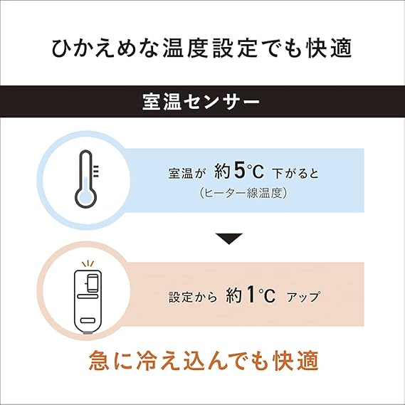室温センサー搭載により快適な温度に自動調節