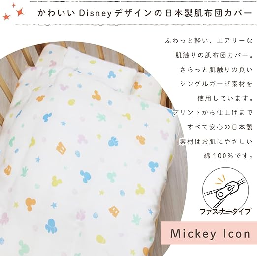 un doudou 日本製 ベビー 肌布団カバー 90×120cm ガーゼ素材 Disney ミッキーアイコン 綿100% NZ6571-E