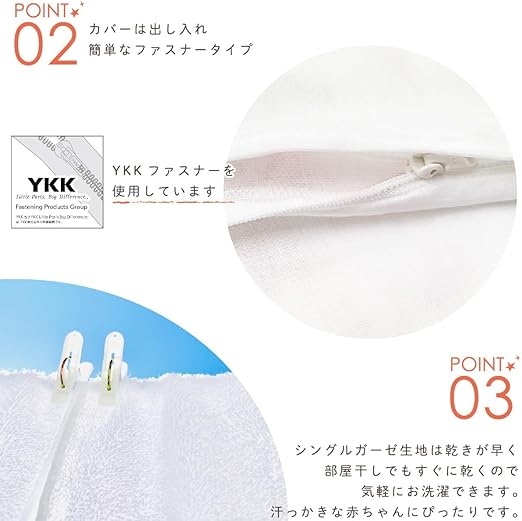 【YKKファスナー】ファスナータイプなので中芯布団の出し入れがスムーズ。