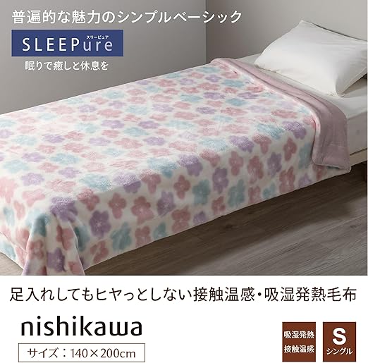 nishikawa 【 西川 】ポリエステル合わせ毛布 シングル 洗える 触れた瞬間あったかい ホッとねる 吸湿発熱 接触温感 ムレにくい LP3662 冬用 スリーピュア ピンク FQ03065004