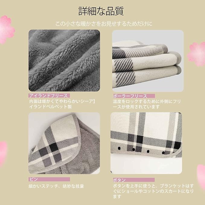 [Pёkyo] 膝掛けブランケット 女性用フランネルフ 軽い毛布 サーマルTVショール 身につけられる毛布 吸湿と断熱 抗菌および帯電防止 通年使用 洗え