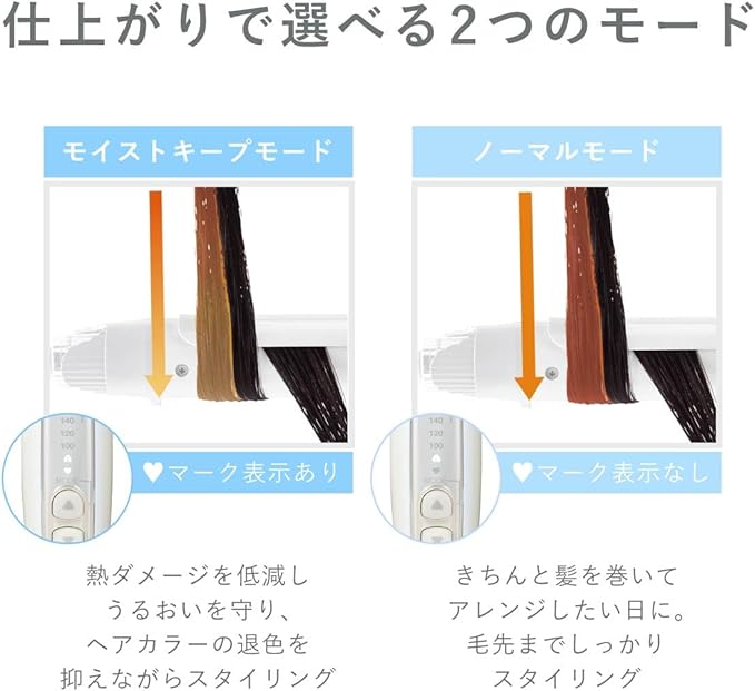 髪のうるおいを守り、ヘアカラーキープ。毛先までまとまり輝くようなカールへ導くカールアイロン。