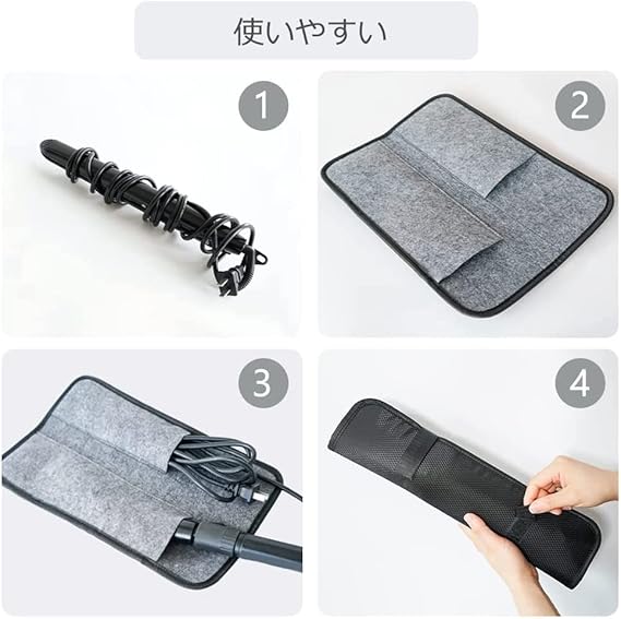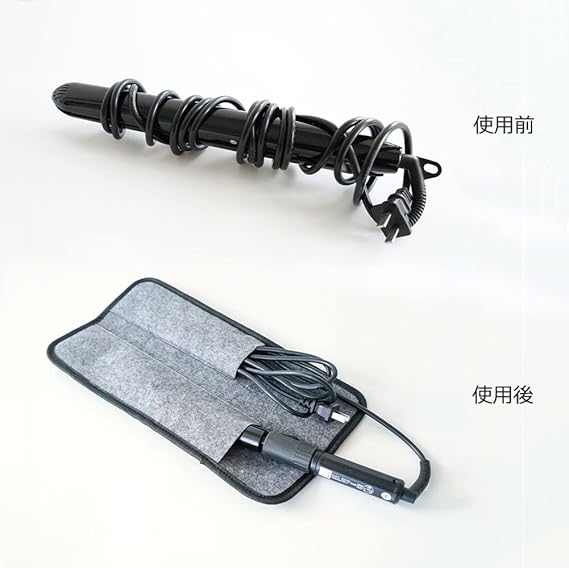 表面は撥水加工素材で、裏面は耐熱性に優れているフェルト素材を採用、耐磨耗で衝撃を吸収、大切なヘアアイロンをしっかり守る。