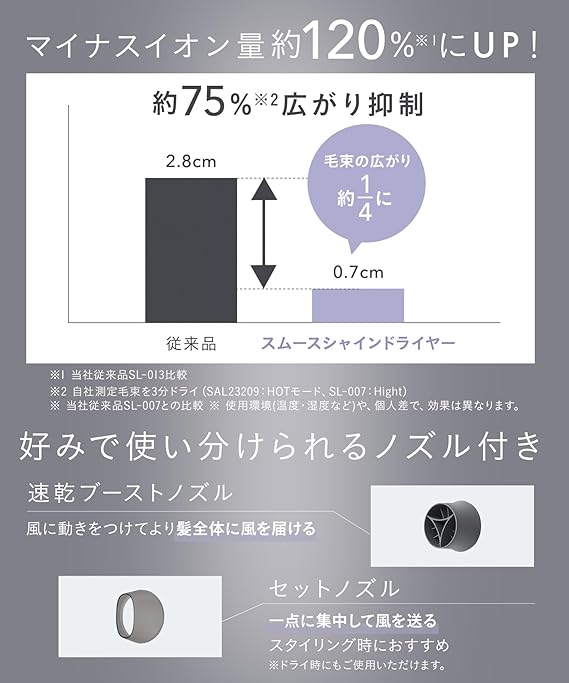 【マイナスイオン量120%※2】 傷んだ髪の毛を?イオンコーティング?しながらケア。?(※2SL-013比較)?