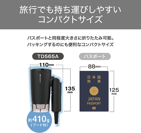 海外でもマイナスイオンで髪まとまる持ち運びしやすいコンパクトドライヤー