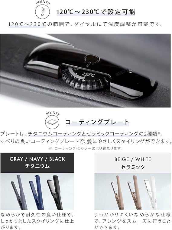 【ストレートヘアアイロン】MAX230℃・360度回転コード・専用耐熱ポーチ・マイナスイオン