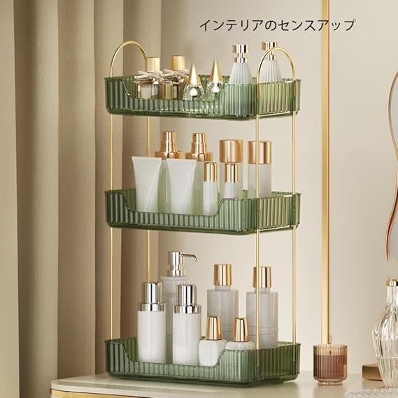 3段式バスルーム/化粧品/メイクアップ/ヘアドライヤー収納ラック、グリーン (透明な緑, 3層)