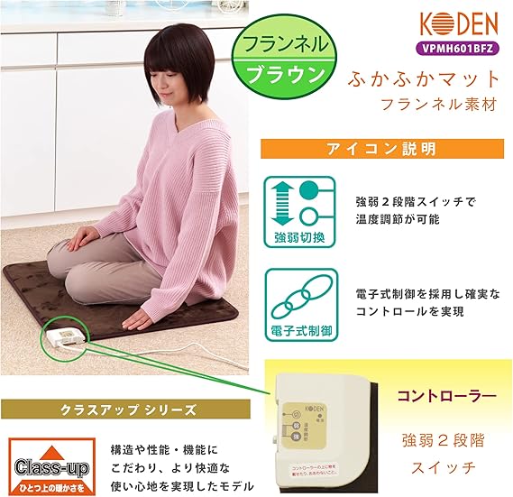 コウデン ホットマット ブラウン 60×60cm フランネル ふかふか なめらか 省エネ 強弱切換 VPMH601BFZ