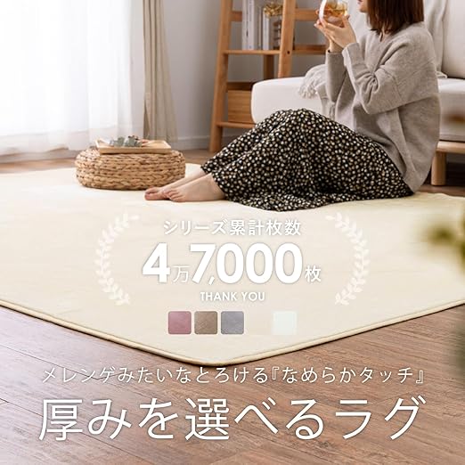 まるで泡立てたメレンゲみたい!思わず触れたくなるようなふんわりなめらかタッチラグ。毛足短めでゴミが入り込みにくく日々のお手入れが簡単に。また、汚れても洗濯できるから安心です。折り畳んでコンパクトに。軽量設計で女性でも簡単に持てるのでお掃除や移動もラクラク♪