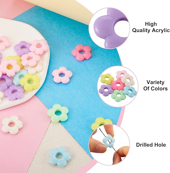 Beadthoven 約50個 混合色 花型 アクリルフレームビーズ フラワー 不透明 キャンディーカラー スペーサービーズ チャームパーツ アクセサリーパーツ 飾り物 DIY ハンドメイド ジュエリー作成 オーナメント 手芸材料 手作り素材 クラフト用品 19x19.5x4.5mm