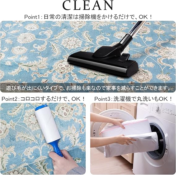 HAOCOO ラグ 夏用 ペルシャ絨毯風 90х150cm おしゃれ 約1畳 洗える カーペット 長方形 耐磨耗性 すべり止め 低反発 防音 室内用 ラグマット シェニール オールシーズン適用 抗菌防臭 軽量 花柄 ライトブルー