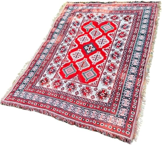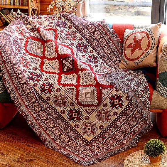 エルパソ ブランケット マルチ ラグ オルテガ柄 エスニック ボヘミアン 薄い 軽い 絨毯 年中使える 130*180 (D, 180cm×130㎝)